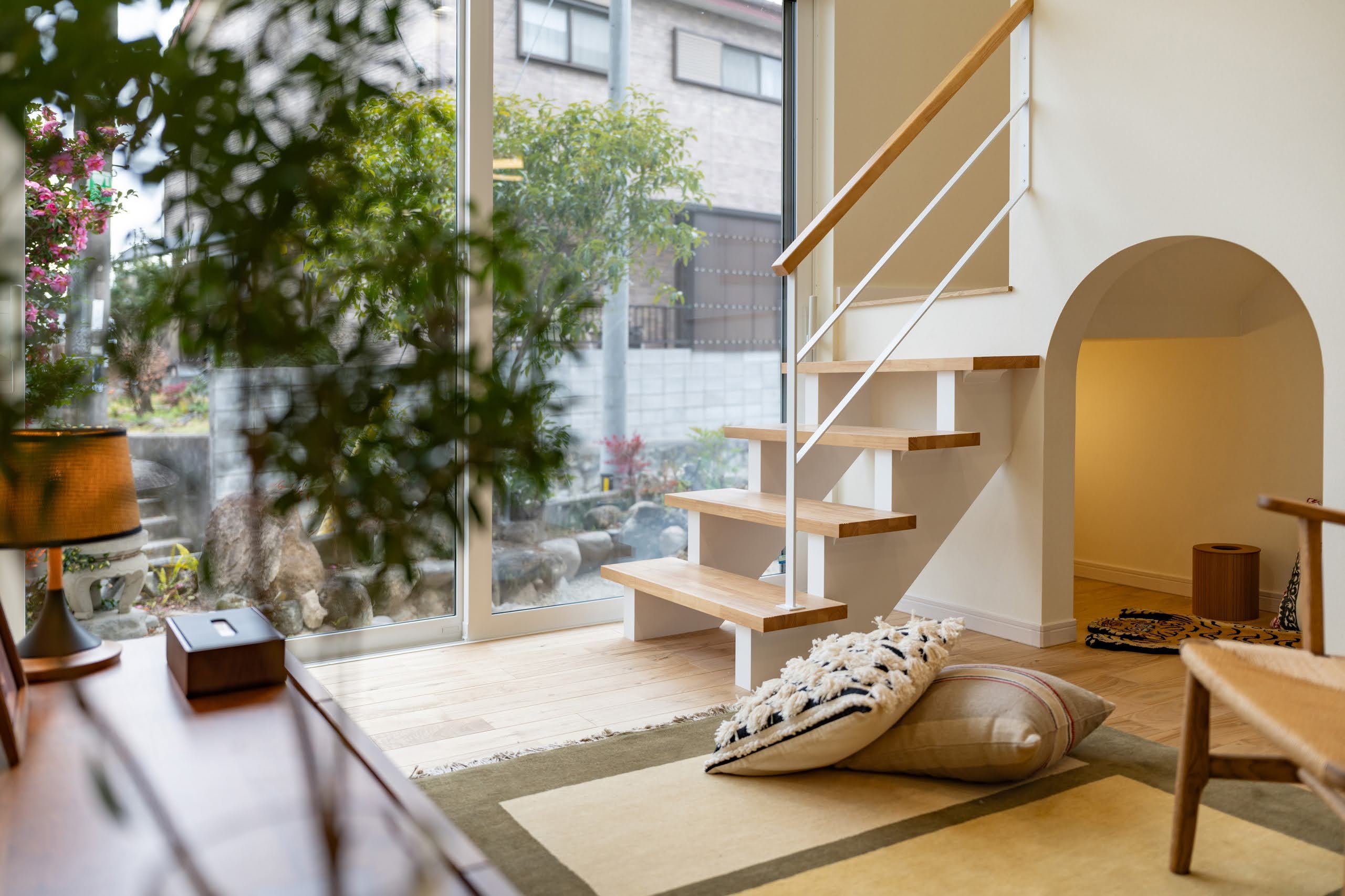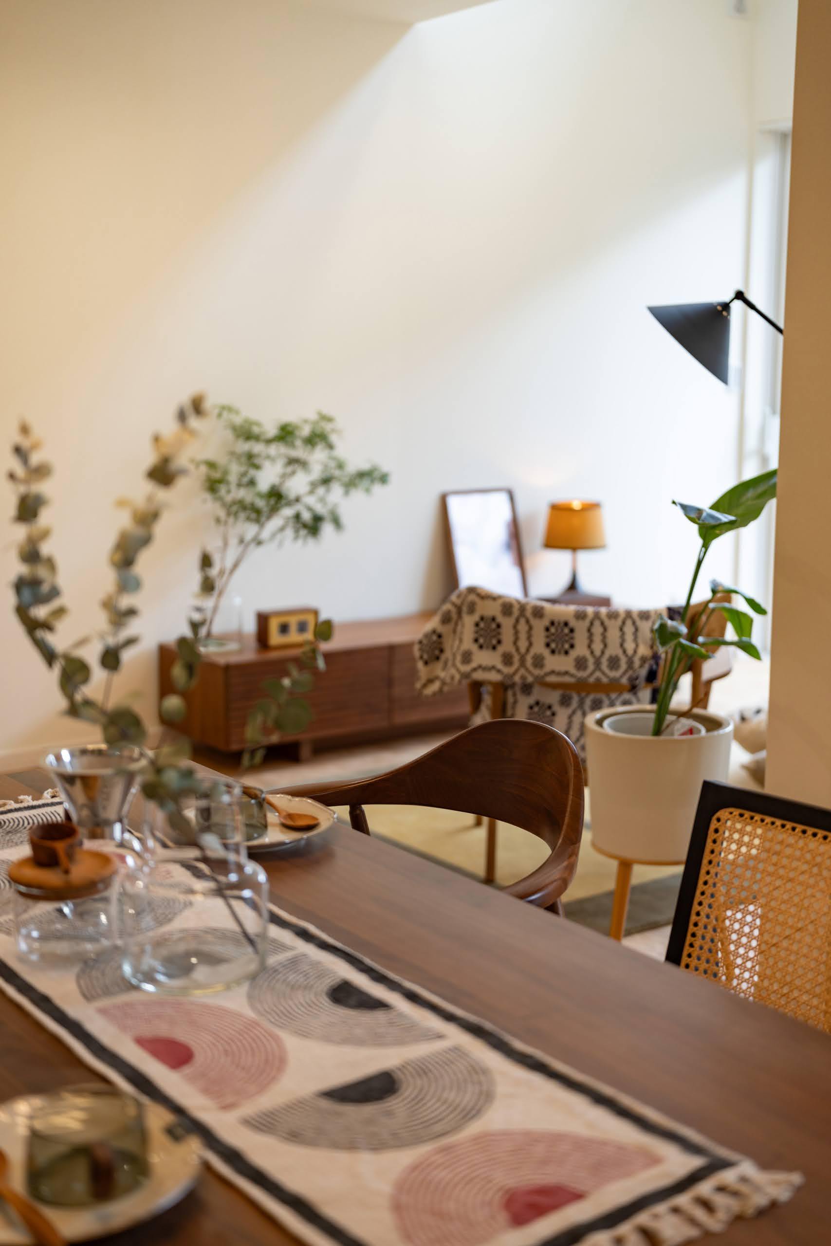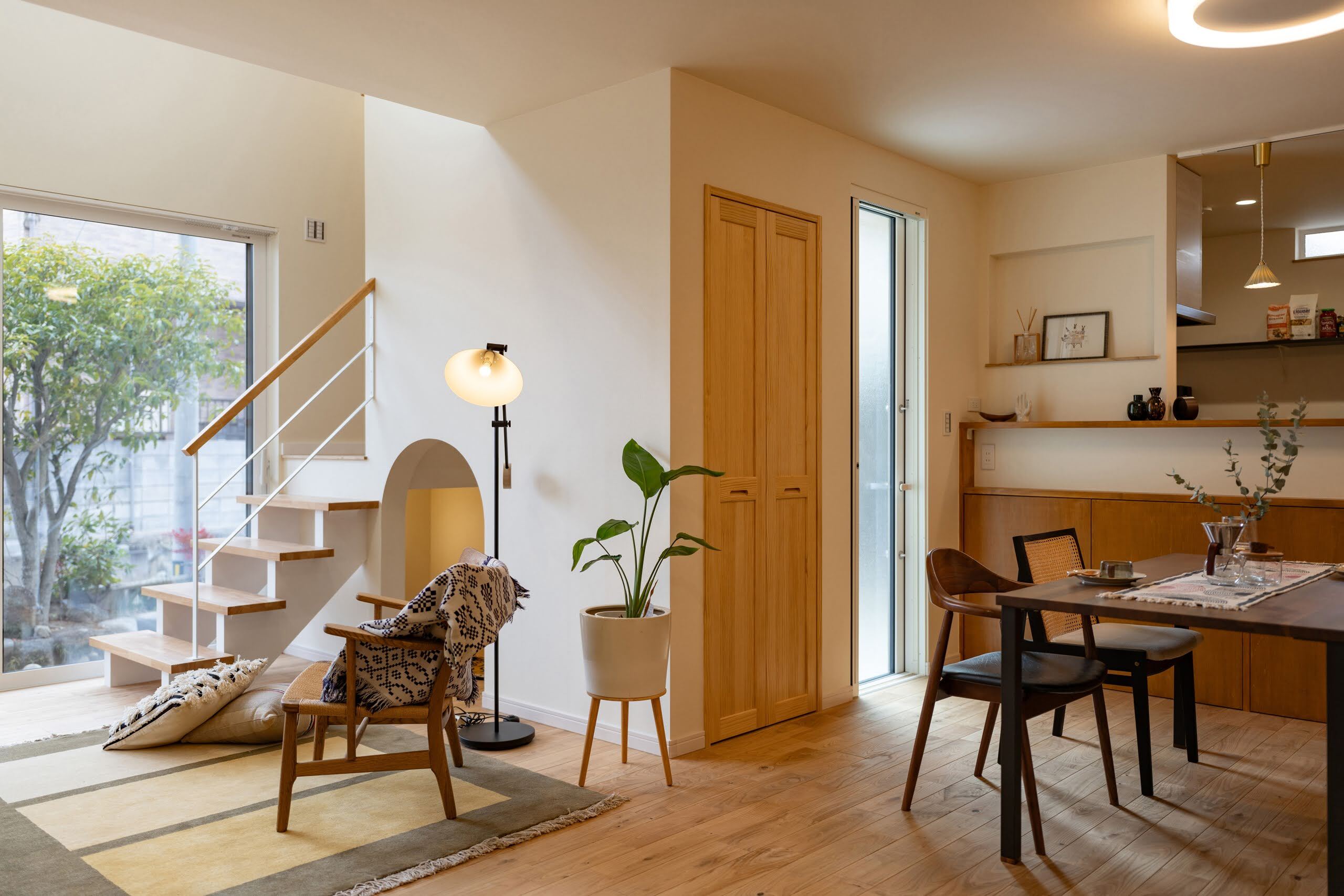 新築戸建ての空間の中に家具や照明、インテリア小物たちがDPされ